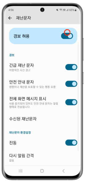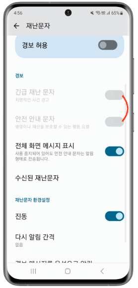 갤럭시 긴급재난문자 알림 설정 방법