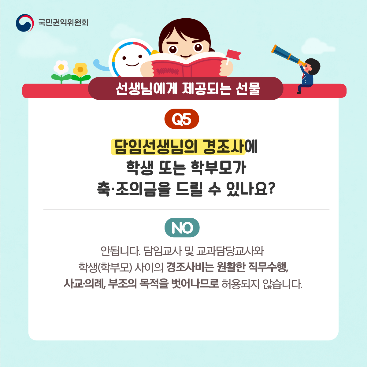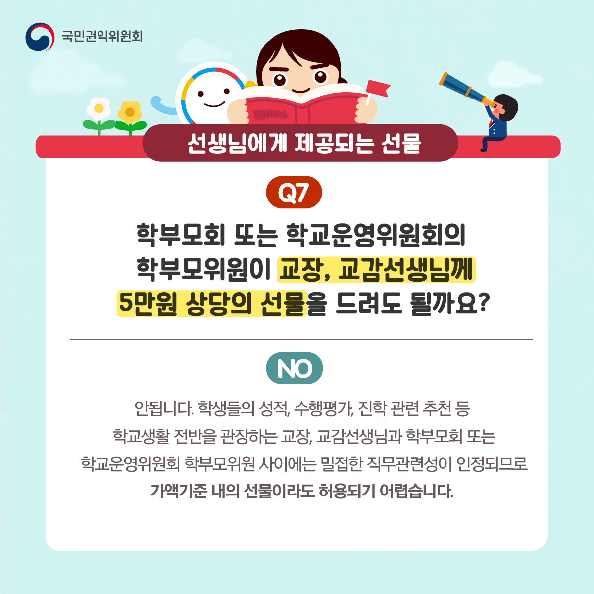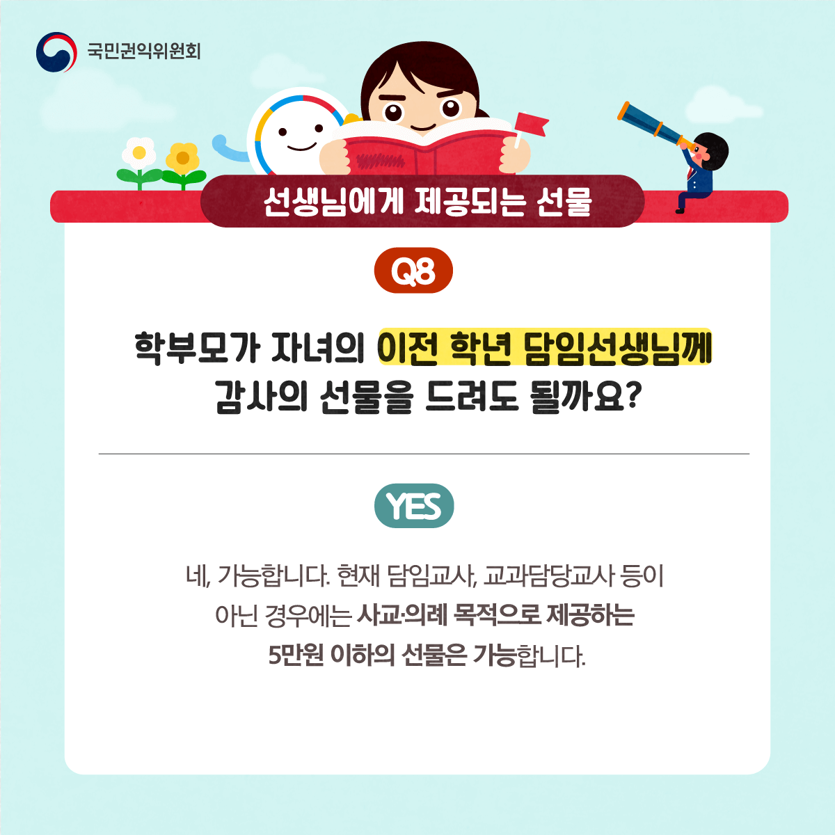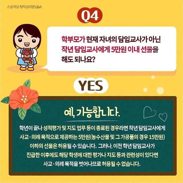 학부모가 현재 자녀의 담임교사가 아닌 작년 담임교사에게 5만 원 이내 선물