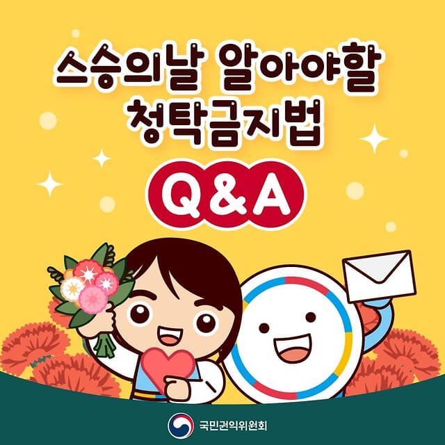 하지만 스승의날에는 학생대표 등이 공개적으로 제공하는 카네이션이나 꽃은 사회상규(국가질서의 존엄성을 기초로 한 국민일반의 건전한 도의감 또는 공정하게 사유하는 일반인의 건전한 윤리감정)에 따라 허용될 수 있습니다.