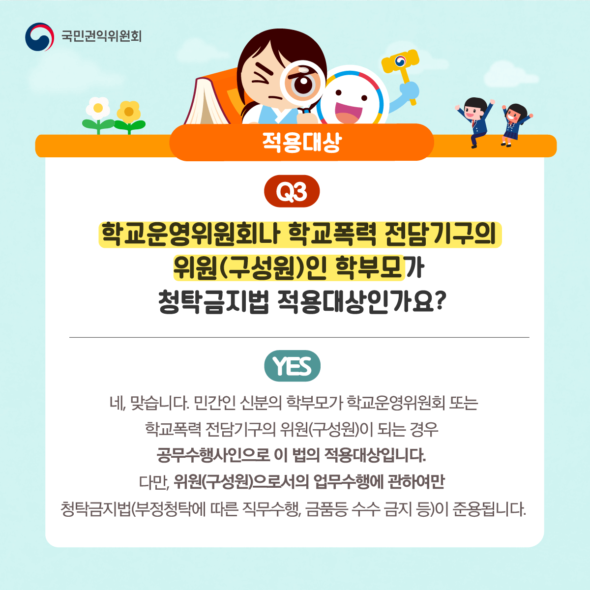 어린이집의 경우 보육교사, 학교의 경우 방과 후 강사는 청탁금지법 대상에 해당하지 않지만 대부분의 국공립어린이집, 여성근로자 300명 이상 또는 상시근로자 500명 이상인 공공기관의 직장어린이집을 위탁받아 운영하는 어린이집, 누리과정운영 어린이집의 원장은 청탁금지법에 적용됩니다.