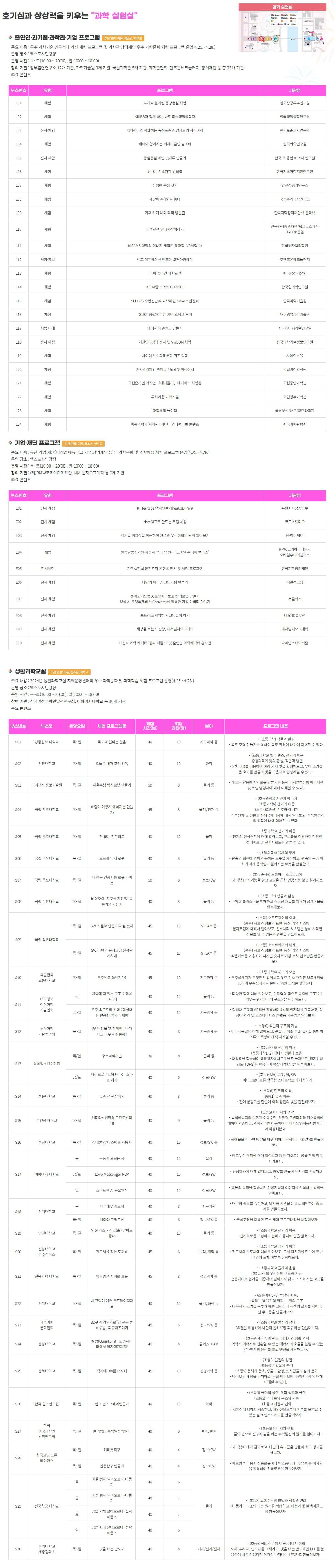 우주산책, 과학방탈출, 과학소극장, 과학톡톡 프로그램 등은 사전등록이 필요하니 원하시는 프로그램이 있으시다면 사전등록을 해주세요.